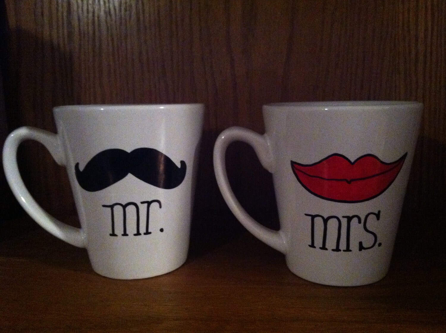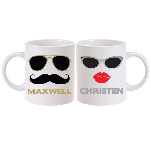 Matching coffee mugs fit will into this category and they will produced as a set of two or sometimes individually with a special dedication to a loved one. A soft blue and a soft pink porcelain mug. Get it while it's hot! Celebrate as a happy couple with this porcelain coffee mug set. His and hers lips and mustache coffee mugs anniversary gift.